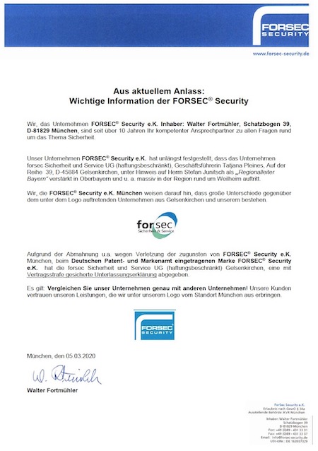 Achten Sie auf die richtige FORSEC Marke! Nachahmer machen sich das Renommee der FORSEC zunutze.